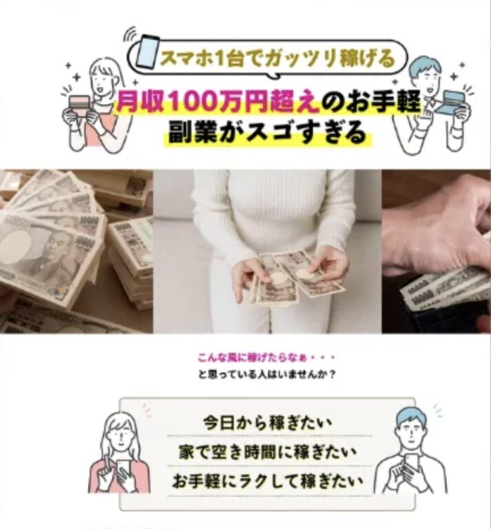 • SNS広告や検索広告で「スマホ副業」を謳う
