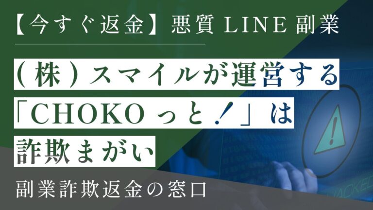 TAGLINE副業 株式会社アストラ(加藤洸希)のLINE副業は詐欺?支払ったお金は取り戻せる可能性があります。2025.10.26 副業詐欺 tomasu 副業詐欺の返金窓口 【緊急警告】スマリッチで1日3万円は完全な嘘!被害者続出の手口を暴露2025.07.25 副業トラブル daru 副業詐欺の返金窓口 【今すぐ返金】株式会社スマイルが運営する「CHOKOっと!」という副業案件は詐欺の可能性2025.02.12 スマホ副業詐欺 daru 副業詐欺の返金窓口