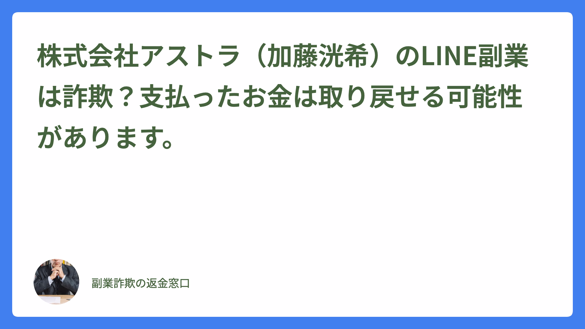 記事内で指摘している事業者の特徴や手口は、必ずしもその事業者が詐欺であることを断定するものではありません。しかし、類似の手口によるトラブルが多発していることから、消費者の皆様に情報を提供し、慎重な判断を促すために公開しております。